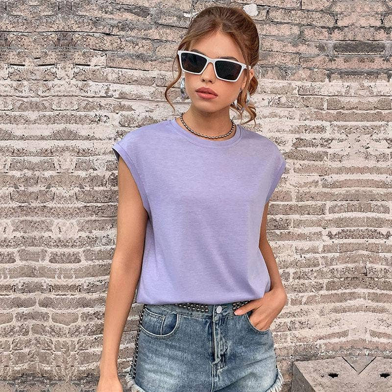 Lavender Round Neck Sleeveless Top